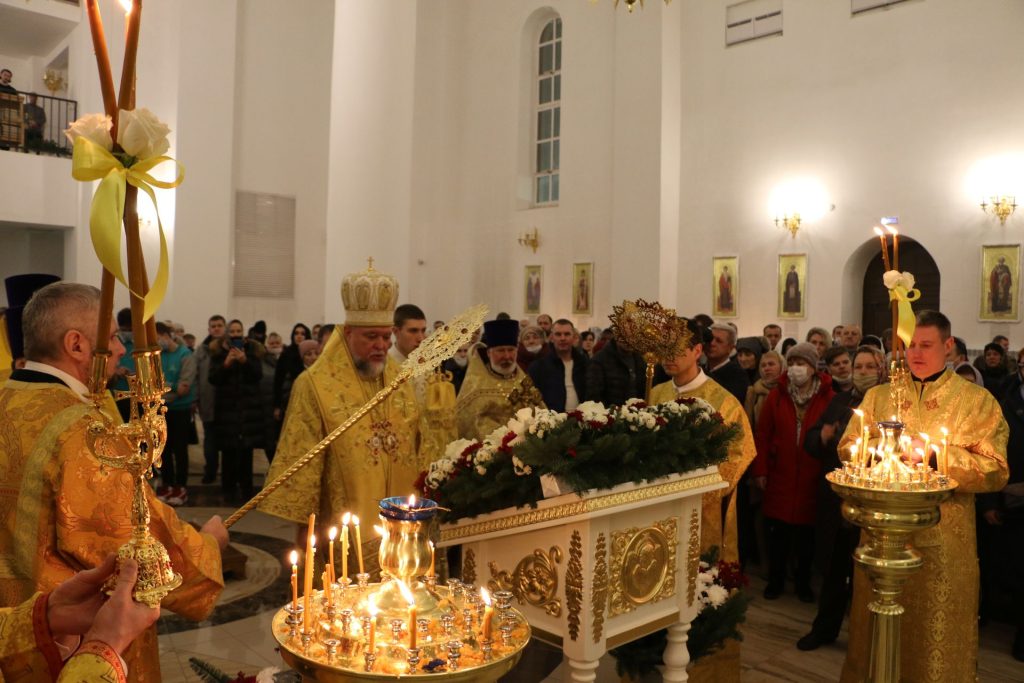 В ночь на 7 января в клинцовском Кафедральном соборе в честь Богоявления Господня состоялось рождественское богослужение. Как сообщает «Брянская губерния», его провел Епископ Клинцовский и Трубчевский Владимир.