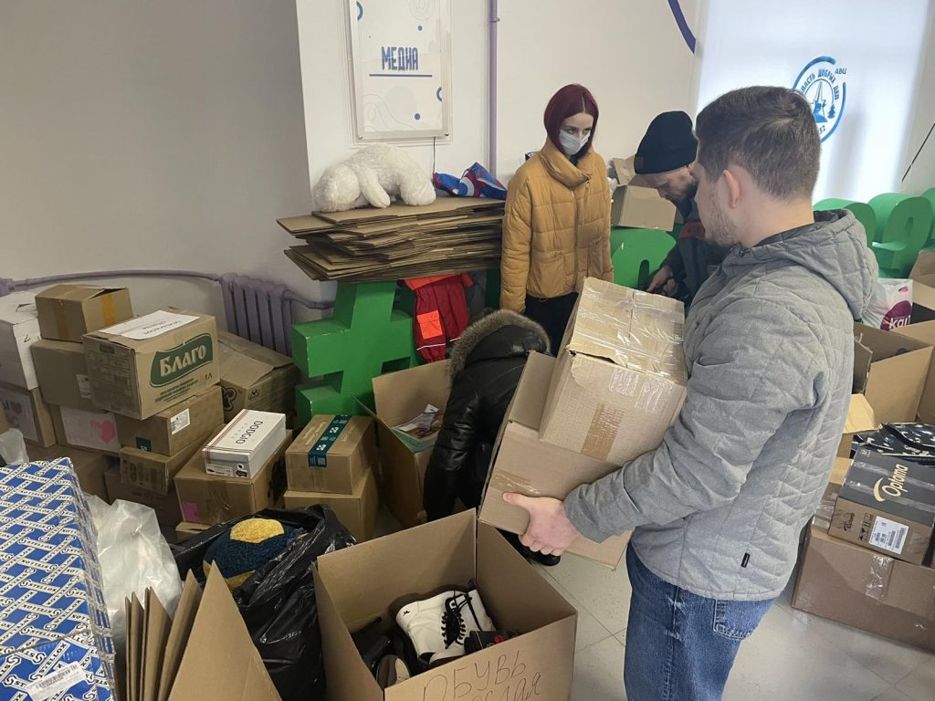 Люди приносят разные вещи — одежду взрослую и детскую, средства гигиены, игрушки, сладости и др.