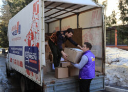 Почти за месяц работы в Дом волонтера, открытый с 9:00 до 20:00, принесли свыше 40 тонн вещей и товаров первой необходимости. Гуманитарную помощь можно принести по адресу: