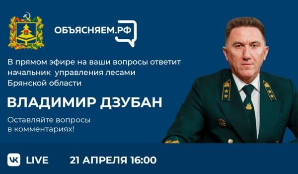 Начальник регионального управления Владимир Дзубан расскажет о лесном хозяйстве Брянской области. Об этом сообщает «БрянскToday».