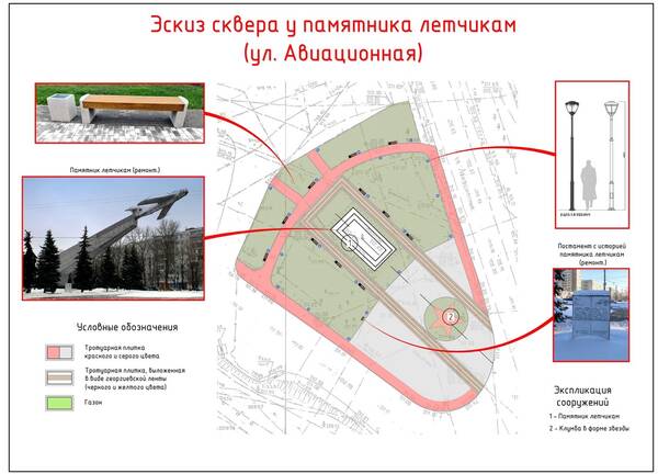 Одним из объектов голосования стал сквер у памятника Летчикам в Советском районе на улице Авиационная. 10 мая пресс-служба горадминистрации представила дизайн-проект сквера.