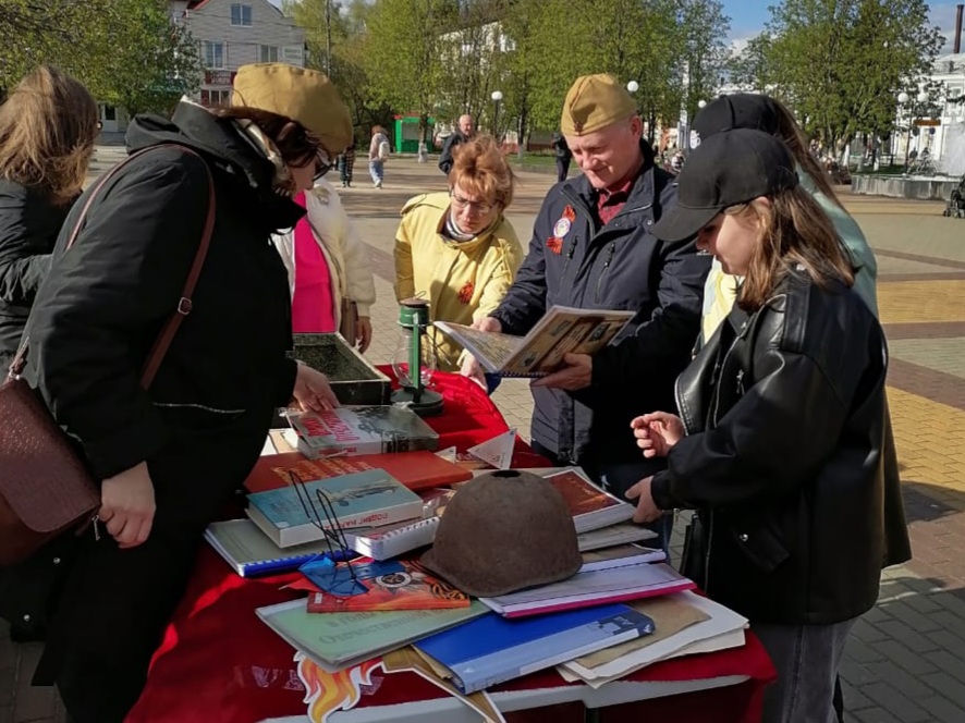 На центральной площади города Карачева была размещена библио-площадка «Победный Май». На выставке были представлены книги о Великой Отечественной войне, собранные работниками библиотеки краеведческие материалы о земляках, участвовавших в великих сражениях.