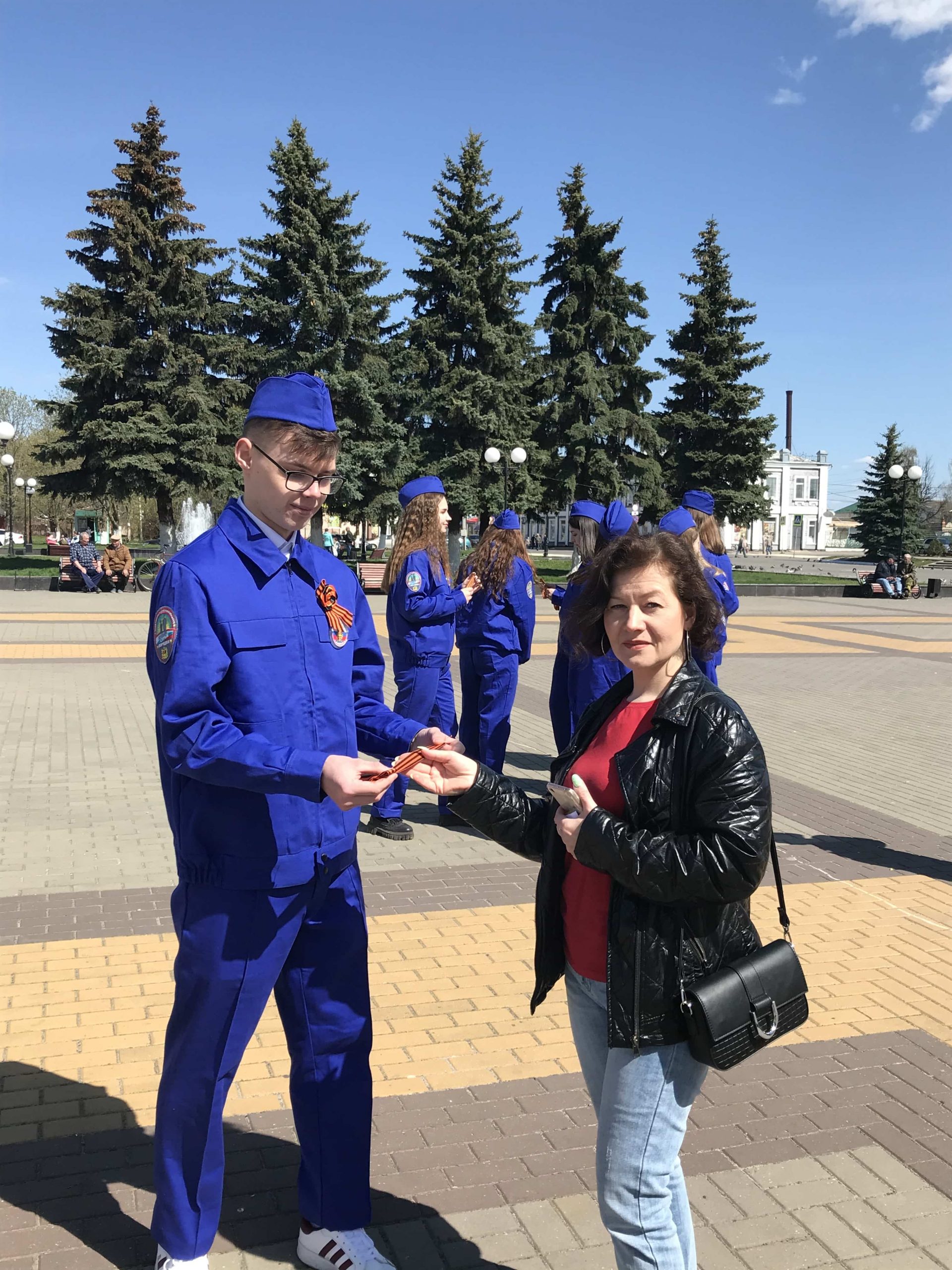 В преддверии празднования Дня Победы участники отряда правоохранительной направленности «Юный страж порядка» раздали жителям символ Победы, воинской славы, отваги и мужества– Георгиевскую ленту.