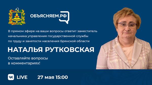 Замначальника управления государственной службы по труду и занятости населения Брянской области Наталья Рутковская расскажет о новых возможностях службы занятости. Свои вопросы брянцы могут оставлять под публикацией с анонсом в сообществе Брянская область в соцсети «ВКонтакте».