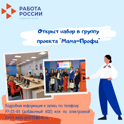 Кадровый центр «Работа России» города Брянска приглашает женщин, воспитывающих несовершеннолетних детей, принять участие в проекте «Мама-профи».