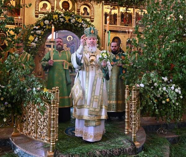 Накануне Митрополит Брянский и Севский Александр совершил Всенощное бдение в Кафедральном Соборе. Главный епархиальный храм в День Святой Троицы отмечает престольный праздник. За вечерним богослужением владыка совершил Литию с благословением хлебов, пшеницы, вина и елея. А также помазал освященным елеем молящихся.на Троицу есть обычай украшать храмы ветвями и травой, которые символизируют обновление людей благодаря Святому Духу. Священники надевают зеленые одежды.