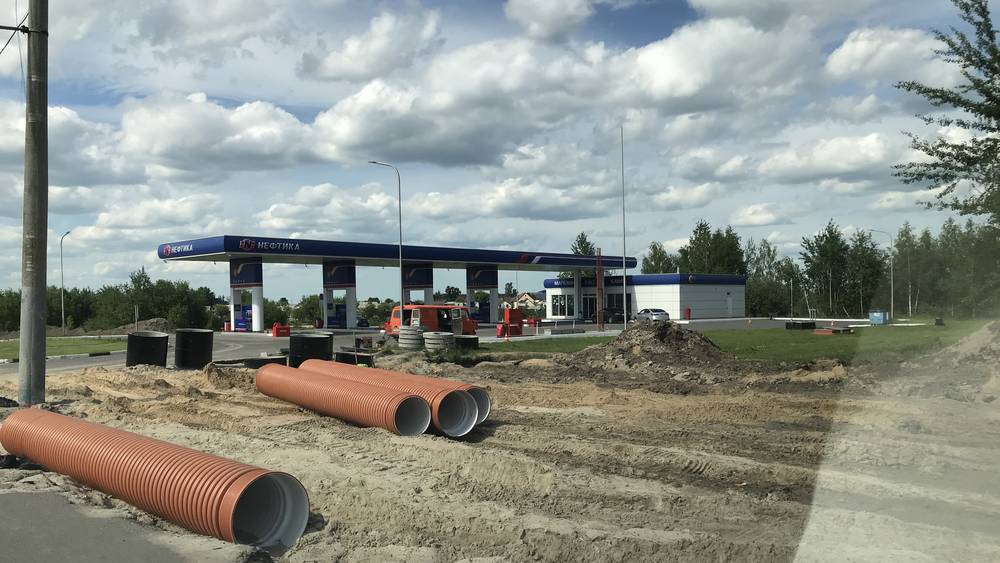 Дорогу расширят почти до линии АЗС напротив «Аэропарка». Она пройдет по площадке, которую ранее занимал шиномонтаж.