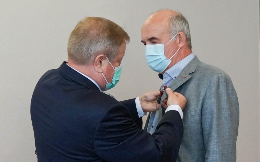 Директор производства кристаллов — СПК-17 АО «Группа Кремний ЭЛ» Юрий Севастьянов награжден за большой вклад в развитие микроэлектроники. Высокую награду вручил замгубернатора по промышленности, транспорту и связи Николай Лучкин. Поздравить Юрия Севастьянова пришли и его коллеги – члены правления предприятия.