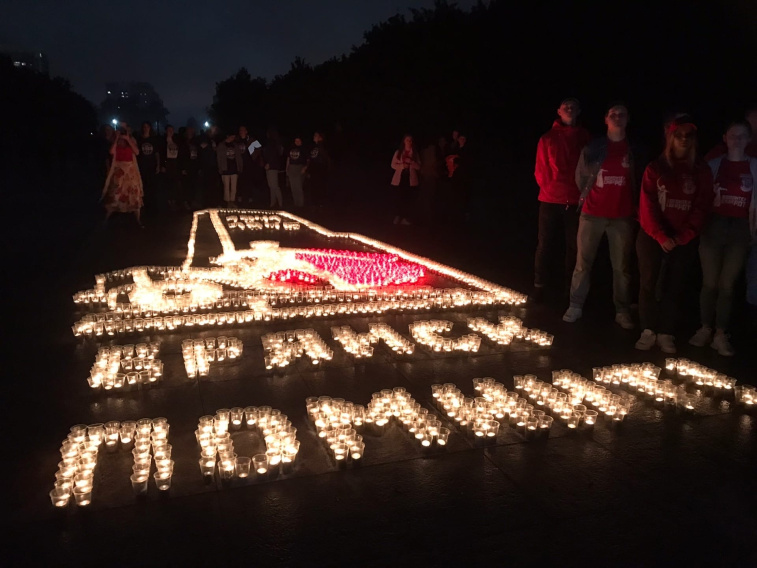 В Брянске на площади Воинской Славы прошла Всероссийская акция «Свеча Памяти». Как сообщает РИА «Стрела», у подножия Кургана Бессмертия появилась «Огненная картина».