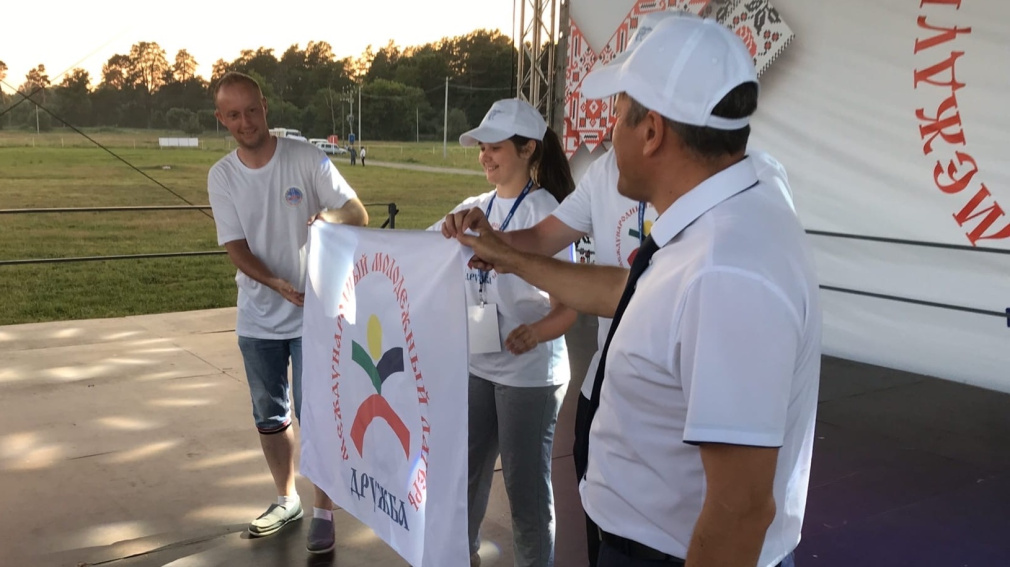 Делегации Гомельской области Республики Беларусь в торжественной обстановке передали флаг лагеря. Представитель делегации Гомельской области Республики Беларусь сказал слова благодарности Брянской земле за замечательный праздник.
