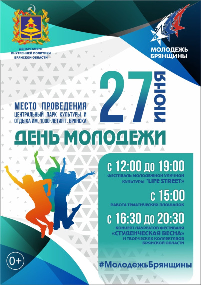 В Брянской области сегодня, 27 июня, отмечают День молодёжи. В Брянске состоится праздничная программа.