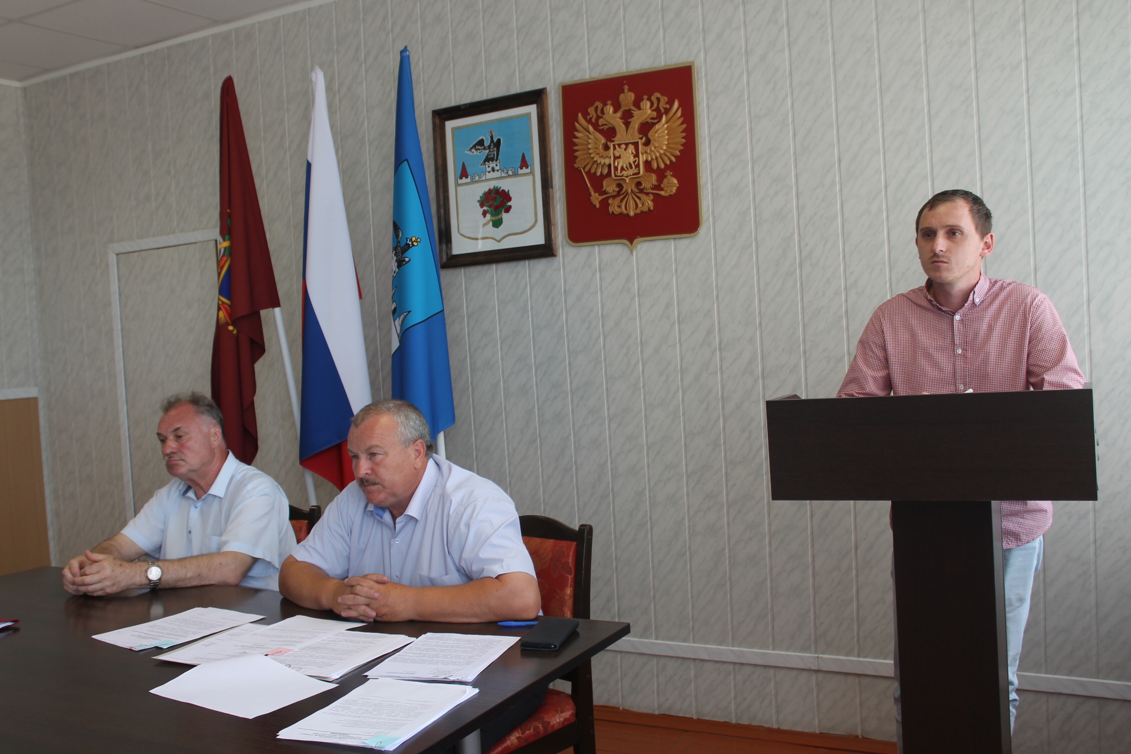 На 45 заседании районного Совета народных депутатов под председательством главы района Александра Васильевича Ходотова присутствовали глава администрации района Леонид Васильевич Филин и прокурор Карачевского района Сергей Владимирович Каргин.