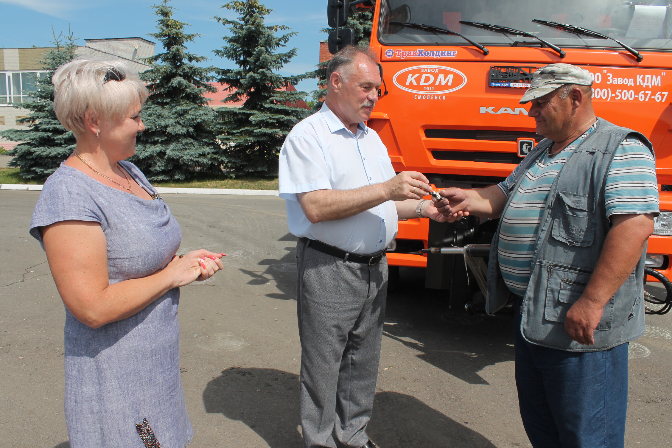 И вот — реальный результат. Мощная комбинированная дорожная машина в Карачеве. Представители власти вручают ключи одному из проверенных и авторитетных водителей коммунального хозяйства Юрию Алексеевичу Илюшкину. По словам профессионала, эта КДМ заменит несколько единиц старой спецтехники. Она приспособлена для уборки мусора, снега, разбрасывания пескосоляной смеси против гололеда.