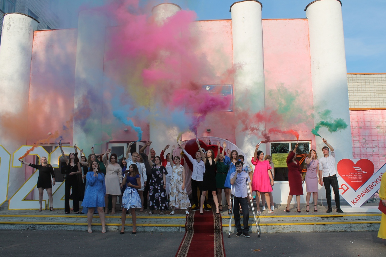 В Карачевском филиале ОГУ им.И.С.Тургенева прошел выпускной вечер «Снимается кино». 68 студентов получили дипломы о среднем профессиональном и высшем образовании. по специальностям «Программирование в компьютерных системах и комплексах, «Технология машиностроения», «Технология аналитического контроля химических соединений», «Экономика и бухгалтерский учет» выпустились студенты СПО.