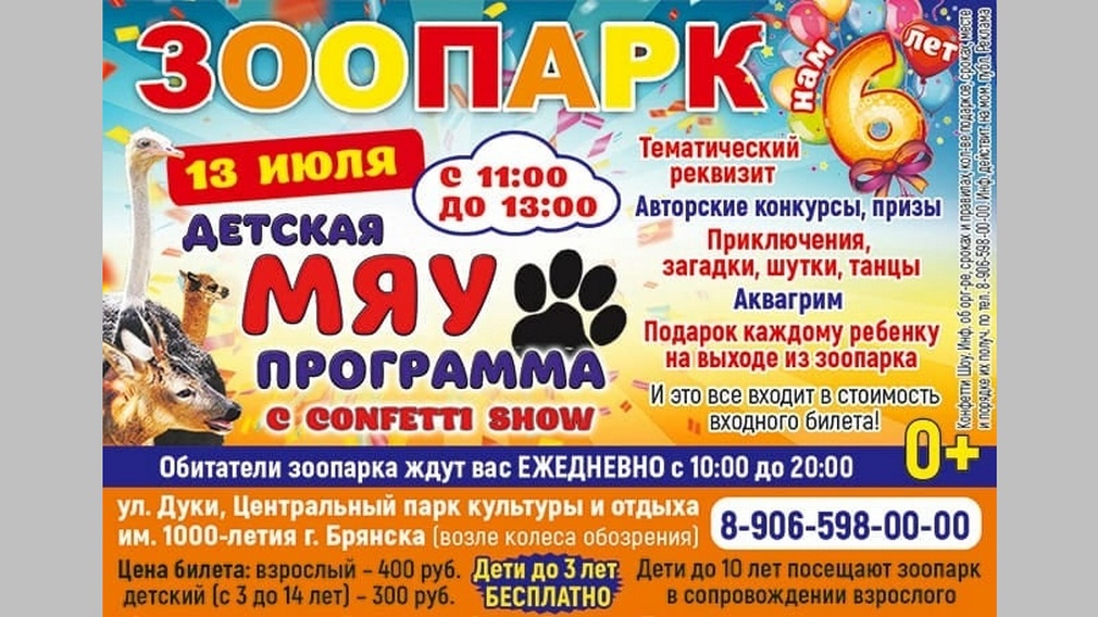 13 июля брянский городской зоопарк отпразднует свой день рождения. Ему исполняется 6 лет. В честь этого знакового события для посетителей подготовлена специальная программа, сообщает РИА»Стрела».