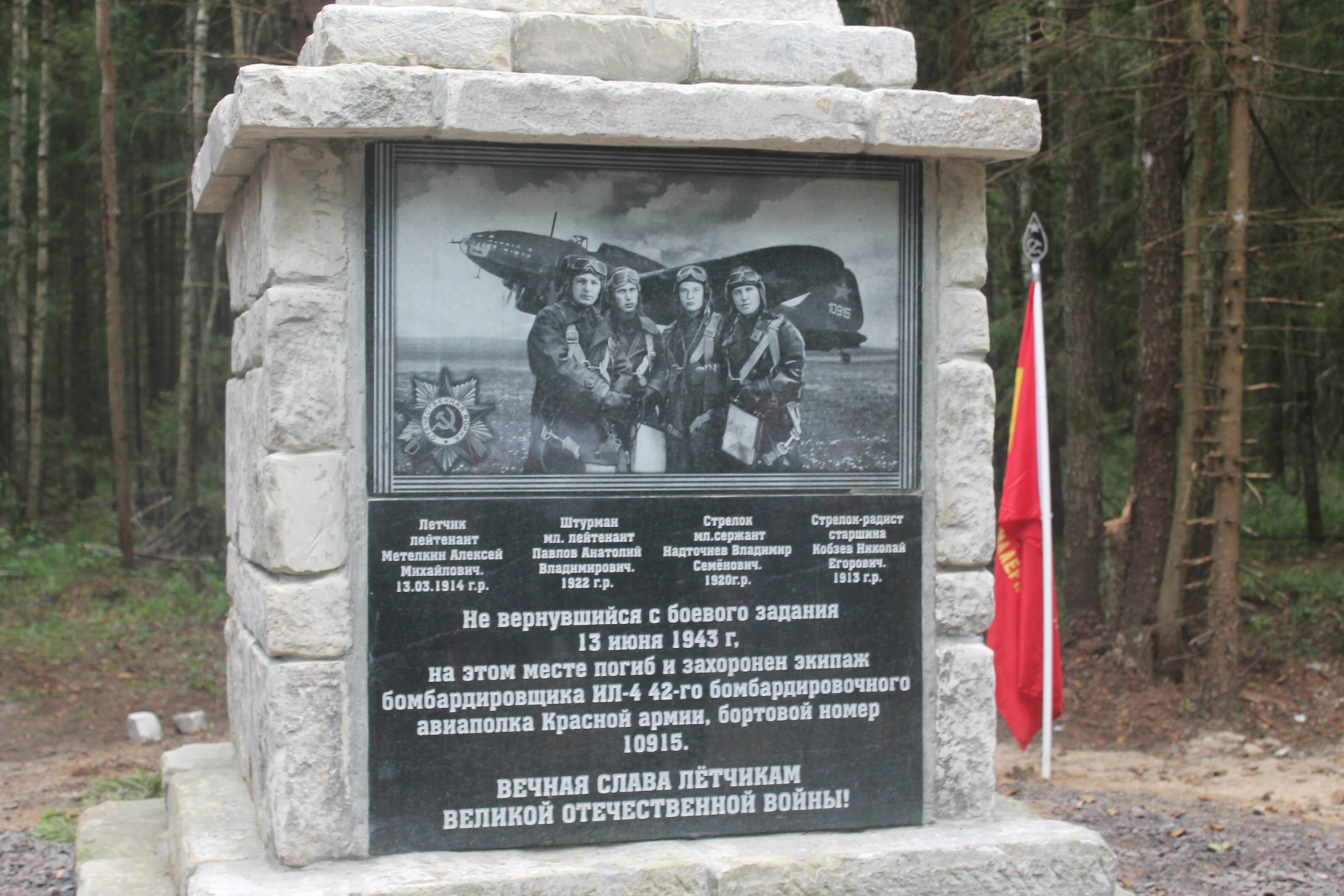 В Карачевском районе стало одним памятником больше. Он находится в лесном массиве, недалеко от реки Велимья, и сооружен в честь экипажа бомбардировщика ИЛ-4, разбившегося на этом месте в 1943-м.