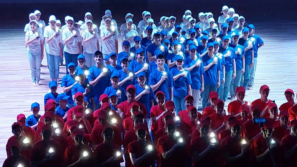 В мероприятии участвовали более 200 ребят из хореографических коллективов города, одетых в костюмы цвета российского триколора. Девочки и мальчики выстраивали различные цветовые комбинации, а потом построились в виде буквы Z. В конце выступления ребята под песню О. Газманова «Россия» зажгли у сердца фонарики и вознесли их лучи к небу.