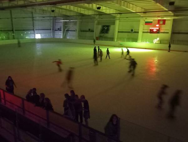 На ледовой арене любители коньков катаются под современную музыку, кто-то танцует. Администрация ледового дворца планирует сделать дискотеки на льду традиционными.