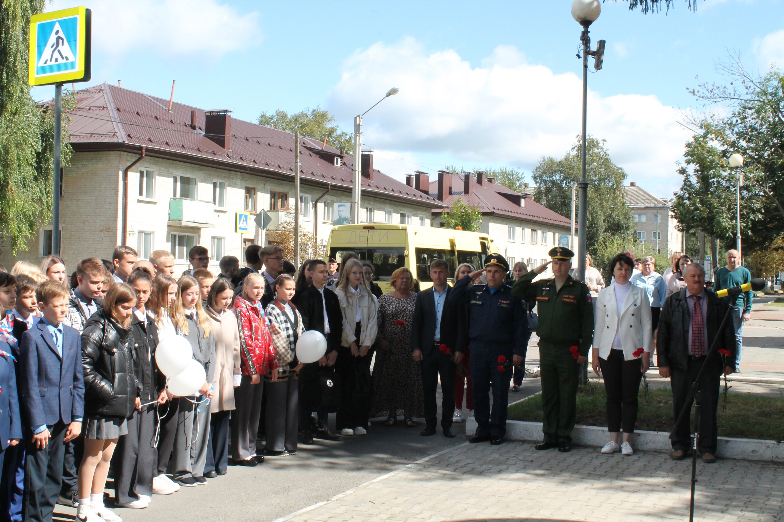 Минутой молчания почтили присутствующие память тех, кто отдал жизни в борьбе с терроризмом. Школьники выпустили в небо белые шары, как символ мира. Все присутствующие в знак памяти и скорби о жертвах террористических актов возложили цветы к памятнику воинам-интернационалистам.