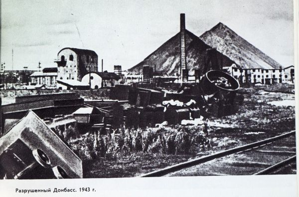 В сентябре 1943 года Донбасс всё-таки был освобождён Красной Армией от немецко-фашистской оккупации. Уходя с территории Донбасса, гитлеровцы поджигали, расстреливали, взрывали угольную инфраструктуру. Последствия их присутствия были поистине ужасающими: 324 шахты основного шахтного фонда и 31 шахта-новостройка были уничтожены. Промышленность Донбасса представляла из себя выжженную землю.