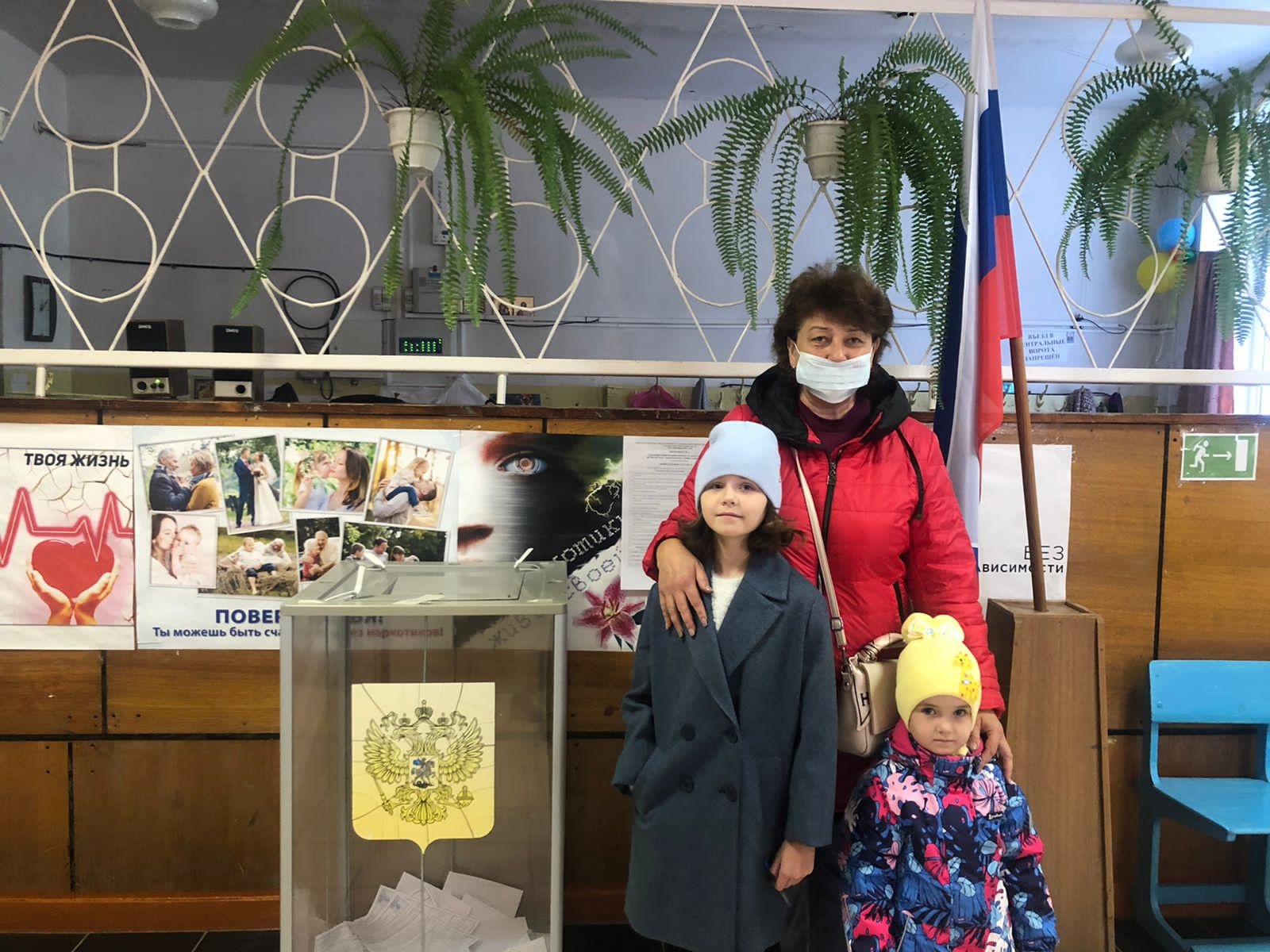 Так, например, Ольга Алексеевна Полякова пришла на участок № 442 (Первомайская школа) с внучками Ксюшей и Лерочкой.