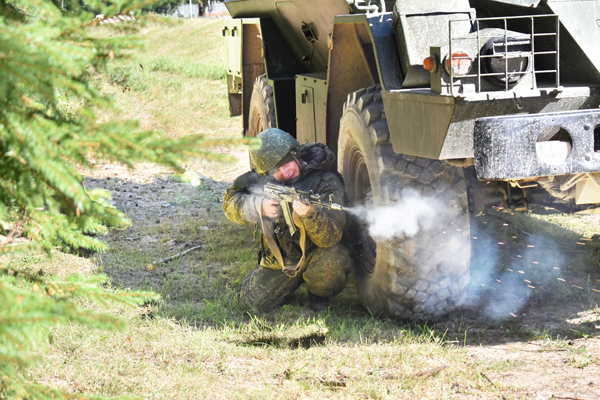 Далее было отработано уничтожение условного противника с применением стрелкового оружия и военной техники