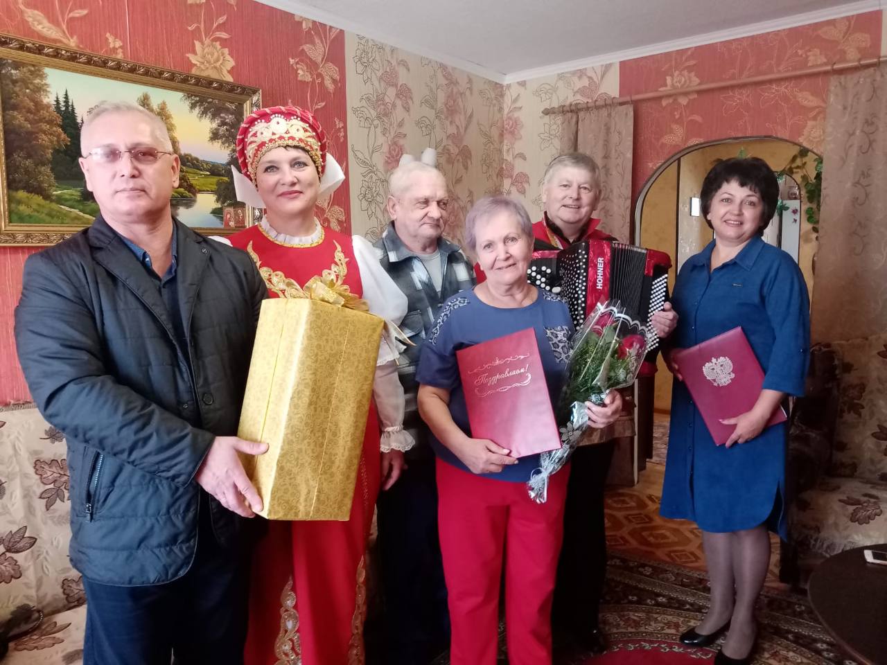 Поздравления в свой юбилей семья принимала от главы сельского поселения И.В Краева., который поблагодарил Алексея Ивановича и Галину Ивановну за крепость семейных уз, за пример благополучного брака. Работники сельского Дома культуры Н.В. Чушева и А.И. Кузнецов создали атмосферу праздника для всех присутствующих: в доме звучали свадебные песни и музыка.