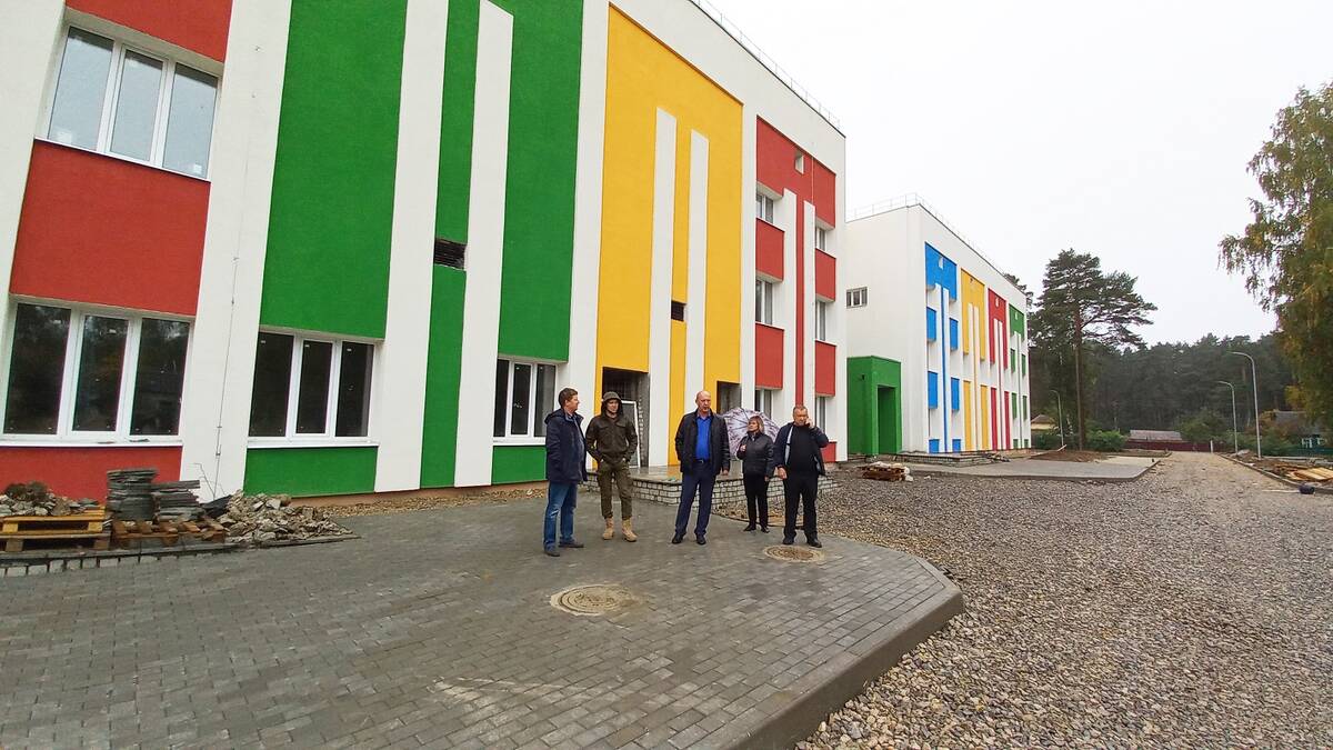 Установлены малые архитектурные формы, уложен газон, подготовлено основание под асфальтирования. Провести его пока мешает дождь.На объекте в очередной раз побывал глава администрации Жуковского округа Олег Воронин, который обсудил с подрядчиком возможность монтажа оборудования до завершения строительных работ.