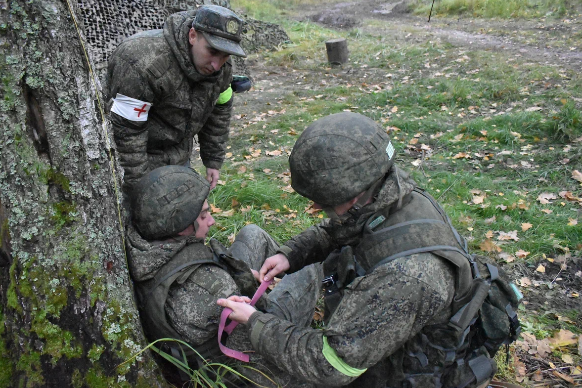 Военнослужащие отработали вопросы применения табельных и подручных средств при оказании доврачебной помощи, а также самопомощи при ранениях различной степени тяжести. Обучаемым предстояло по-пластунски приблизиться к условно раненному военнослужащему, наложением жгута остановить артериальное кровотечение из раны, оттащить пострадавшего с опасного участка в укрытие и оказать ему доврачебную медицинскую помощь. В основу таких занятий заложен боевой опыт современных локальных конфликтов и специальной военной операции.