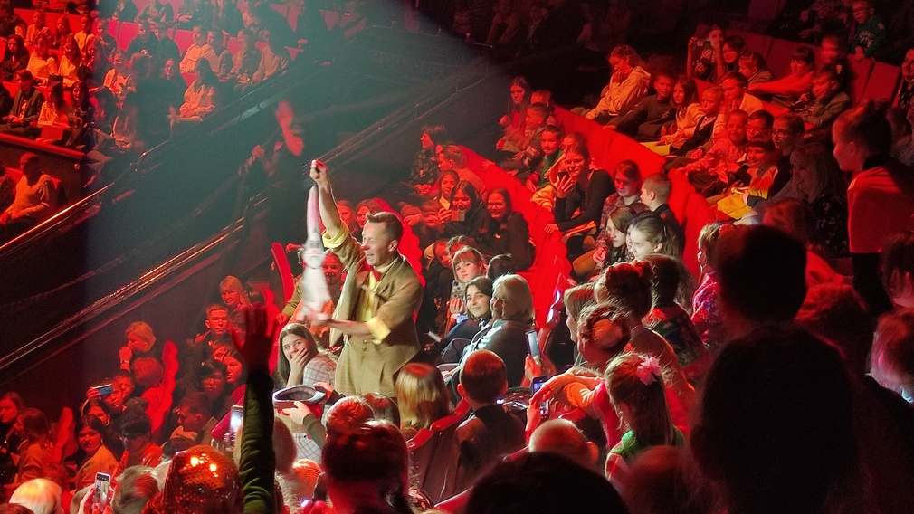 Затем на арене цирка развернулась настоящая сказка — свое выступление начали артисты Российской Государственной компании и продюсерского центра «Королевский цирк». Они представили вниманию гостей Новогоднее Цирковое шоу Заслуженного артиста России Гии Эрадзе.