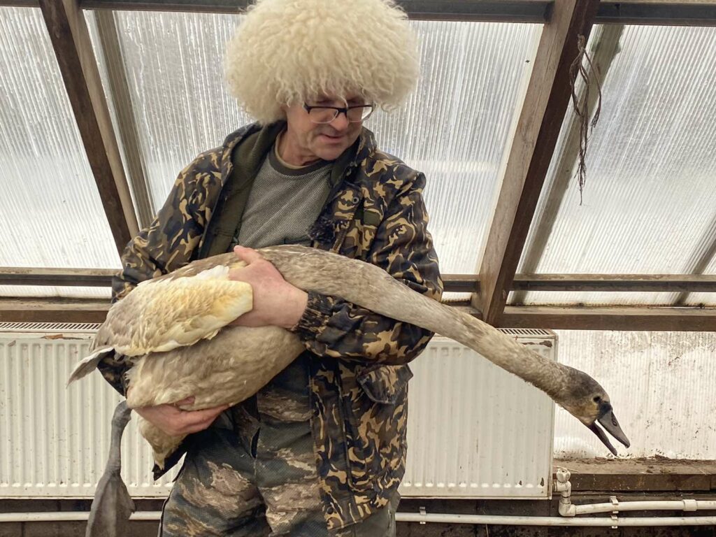 В рождественские морозы (при -20°) птицу вытащили из водоема в Климово, накормили и передали в хозяйство Стародуба. Это уже третий лебедь, которых взял на передержку стародубский фермер Сергей Мамеев. У одного из них после нападения хищника повреждено крыло.