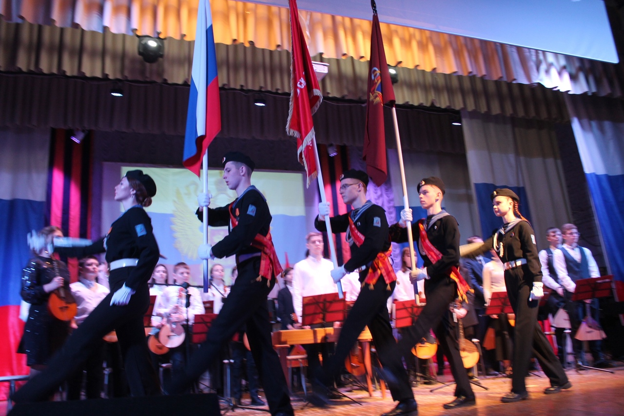 День Защитника Отечества — один из самых почитаемых праздников. Он обозначен красным цветом в календаре. За сто пять лет 23 февраля стало и днем знаменательным для всей страны. В этом году праздник обрёл особый смысл, зал был полностью заполнен, даже в проходах не было места. Сценарий тематического концерта «Заступники Отечества», был подготовлен в необычном, расширенном формате.