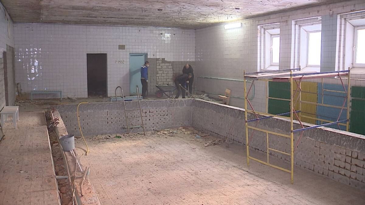 Благодаря федеральной программе по модернизации школьных систем образования, в здании заменят окна, напольное покрытие, крышу, чашу бассейна, душевые, раздевалки, а также обновят систему отопления и электропроводку. Сейчас рабочие уже демонтировали старую плитку.