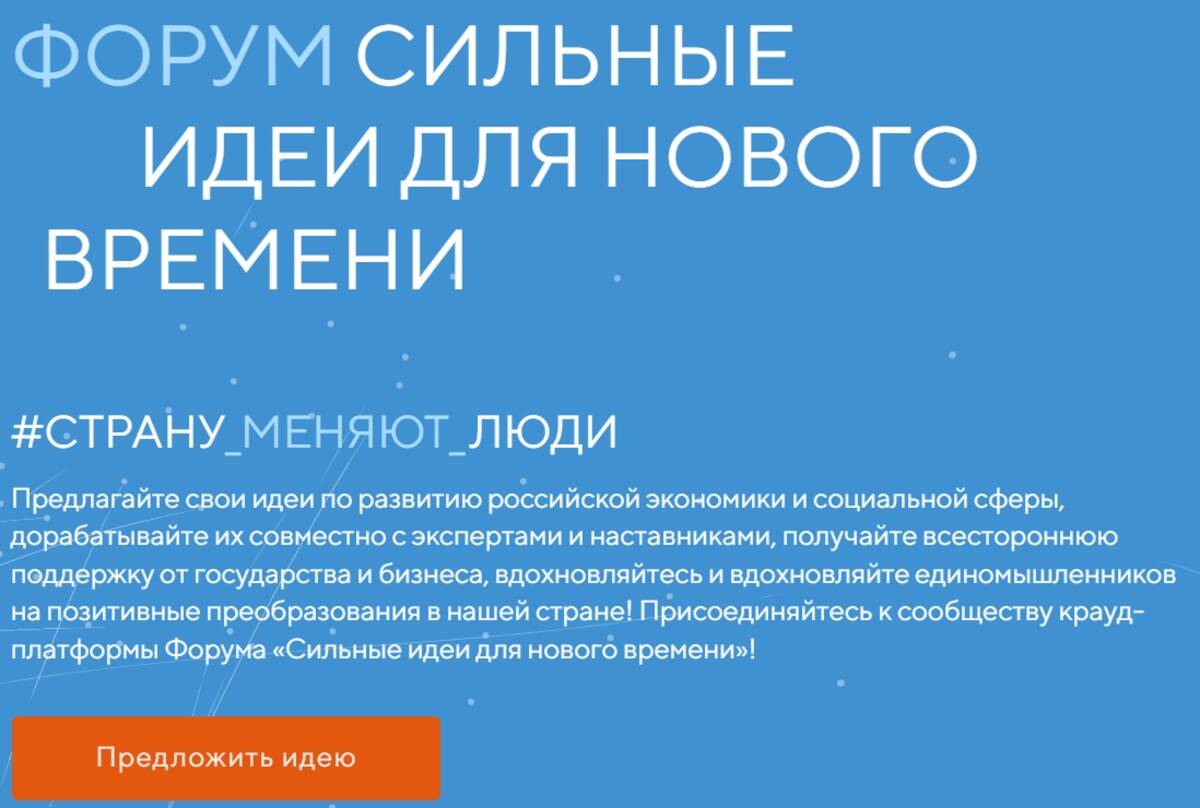Свои концепции жители Брянщины могут отправлять на платформу до 26 апреля. Самые удачные идеи обсудят на третьем форуме «Сильные идеи для нового времени», который состоится 28-29 июня. Топ-10 лучших инициатив попадут на рассмотрение Президенту России.