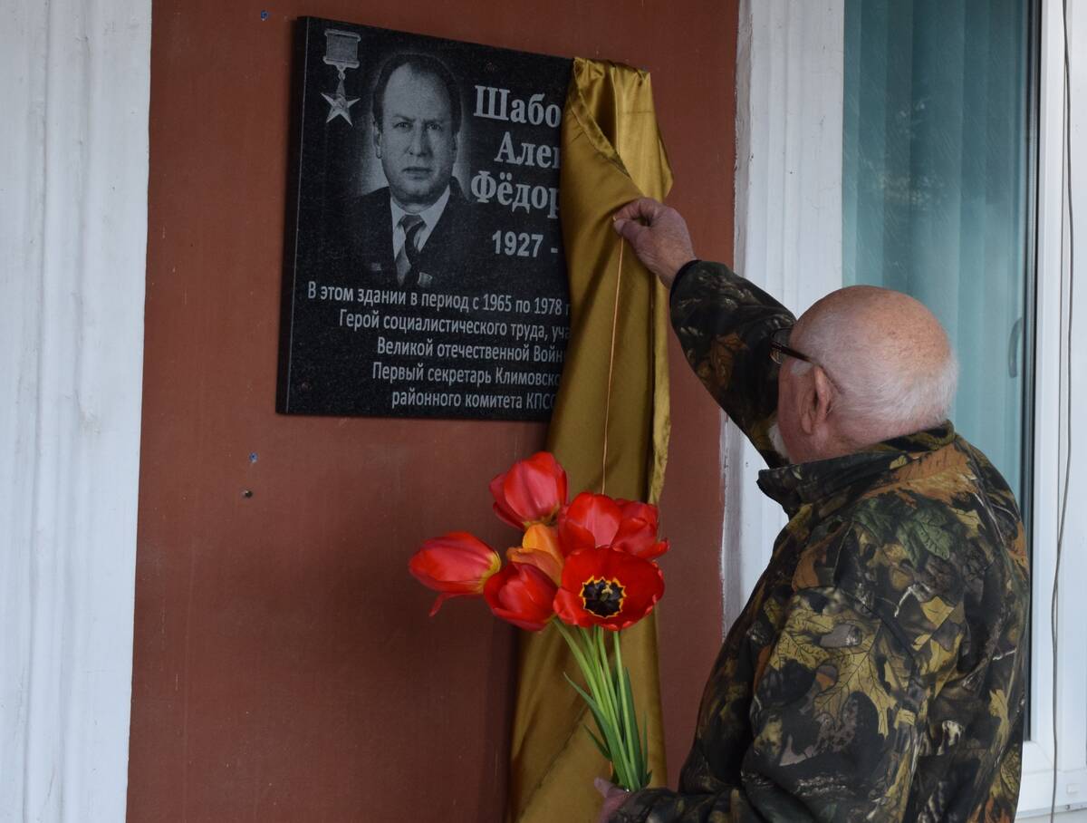 В брянском поселке Климово торжественно открыли мемориальную доску Герою Социалистического Труда Алексею Федоровичу Шаболтаеву. Об этом сообщает «БрянскToday».