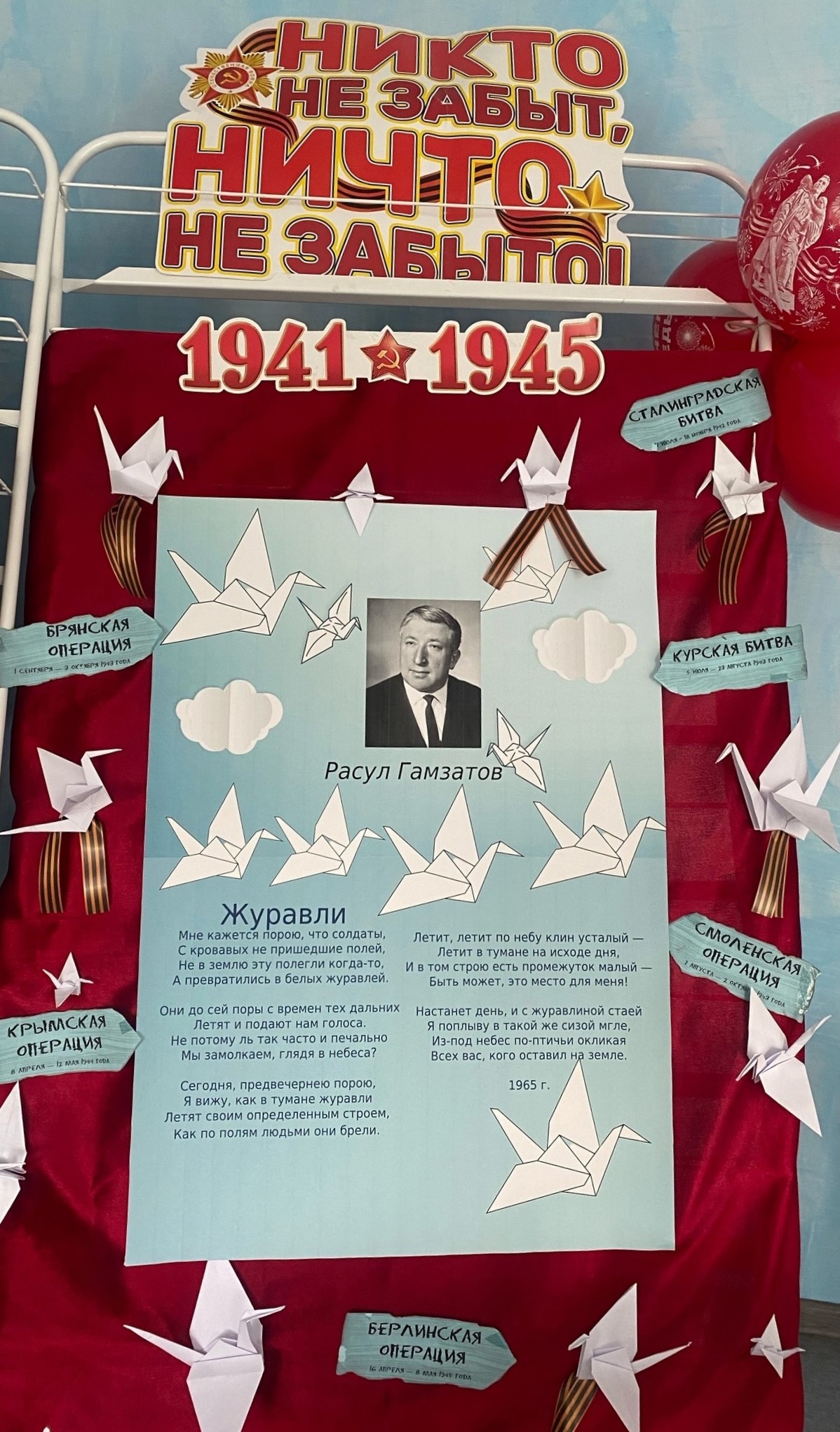Карачевская модельная районная библиотека им. Баранских Н.Н. и Н.В. приняла участие во Всероссийской культурно-просветительской акции по изготовлению бумажных журавлей «На литературной высоте», приуроченной ко Дню Победы и 100-летнему юбилею советского поэта Расула Гамзатова, организованной департаментом модельных библиотек Российской государственной библиотеки.