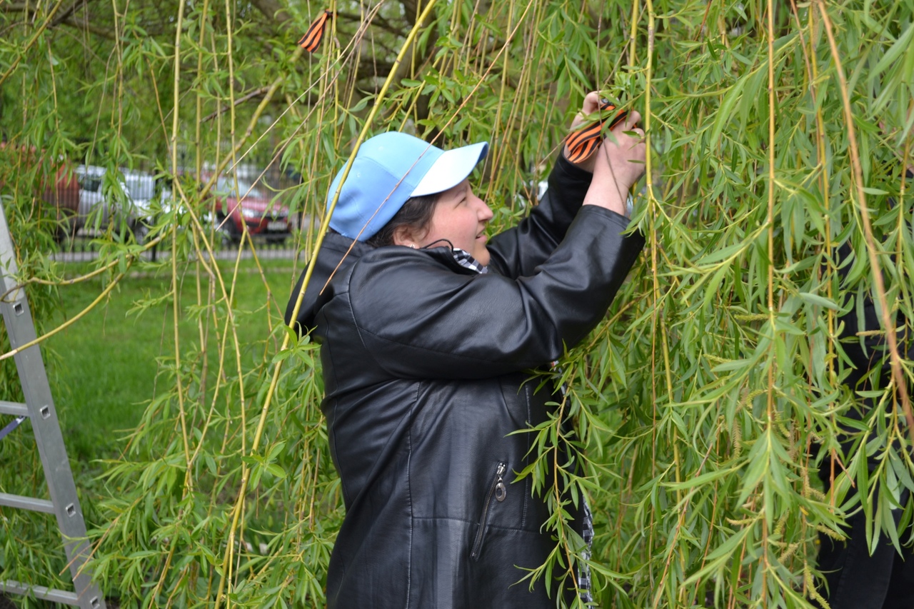 Акция проходит в канун празднования 78 -годовщины Победы в Великой Отечественной войне. Все желающие смогли повязать Георгиевские ленты на дерево, которое растет на территории филиала.