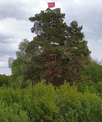 В Суземке на Брянщине в День Победы по традиции установили флаг на самой высокой сосне. В этих местах проходили сражения во время Великой Отечественной войны.