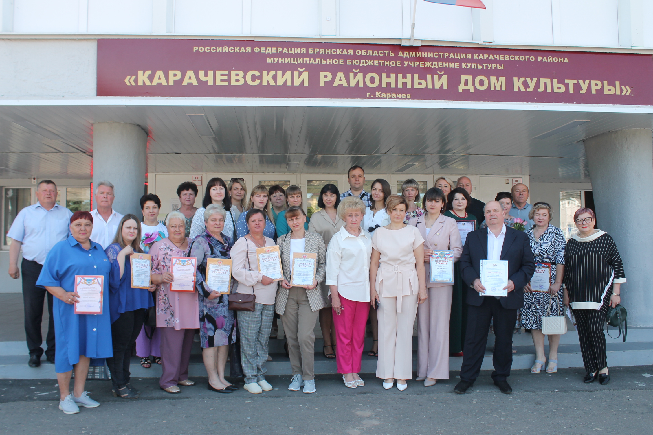Глава администрации района Л.В.Филин, первый заместитель С.А.Шкуркин, глава города Карачева М.А.Николаева поблагодарили всех собравшихся и отметили, что для труженика
