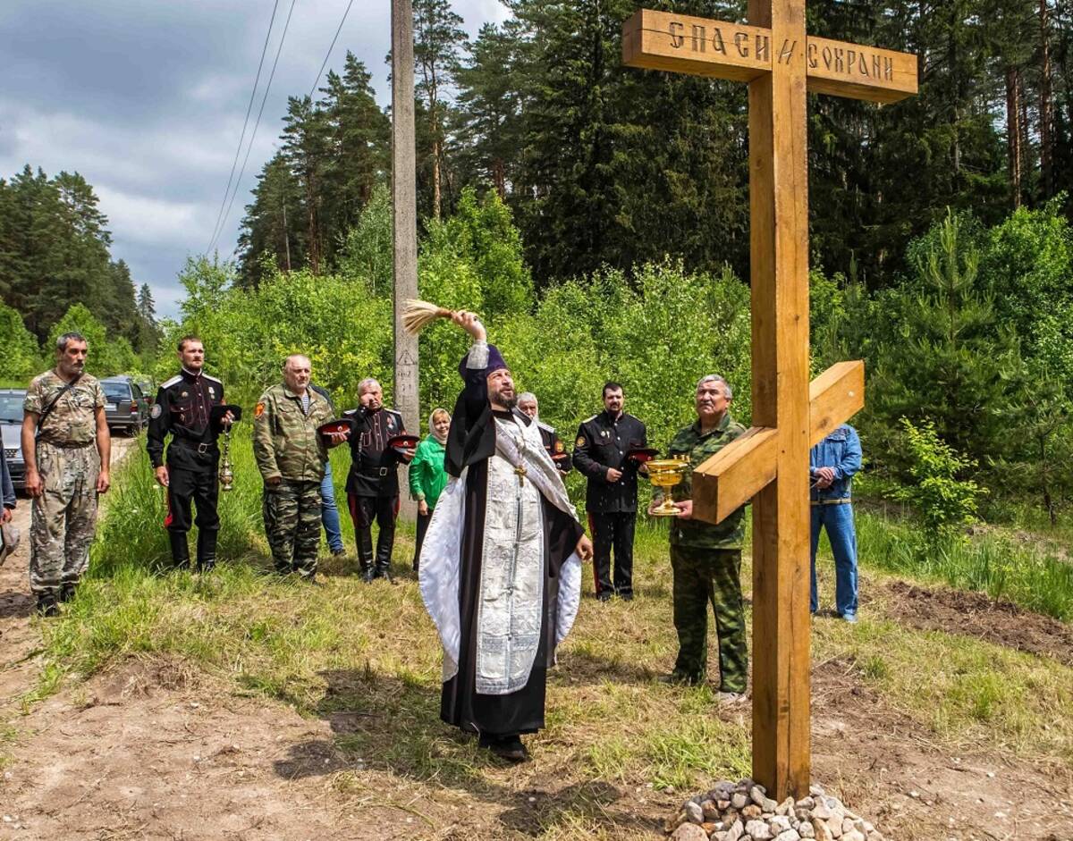 Он был сооружен дятьковскими казаками в память о местных жителях, погибших в этих местах в годы Великой Отечественной войны. Здесь фашисты расстреливали мирных жителей. По этой же дороге нацисты уводили в концлагеря наших земляков. На освящении Креста присутствовали местные жители и казаки,