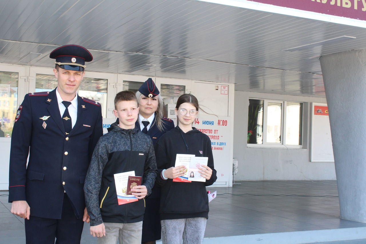 В торжественной обстановке, во время проведения концерта, начальник ОМВД России по Карачевскому району, подполковник полиции П.П.Кузьмин вместе с начальником отделения по вопросам миграции ОМВД России по Карачевскому району, капитаном полиции Е.В.Халипиной вручили двум юным жителям Карачева главный в жизни документ – паспорт гражданина Российской Федерации.