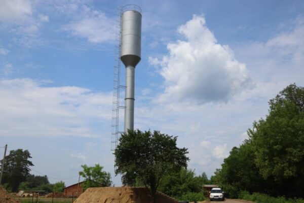 Сейчас рабочие установили новую башню на 50 кубов, сделали ее обваловку , планировку и благоустройство территории вокруг. Старую башню демонтировали. Новая подключена к скважине, и она заполняется водой. Еженедельно в поселок приезжают представители Ростехнадзора, которые контролируют качество и ход работ.