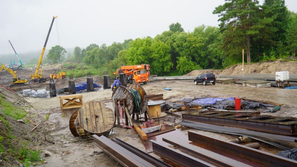 Строительство моста началось в апреле. Это единственная транспортная артерия, по которой можно попасть в город, к тому же по нему движутся и большегрузы, цементовозы.