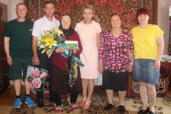 Поздравить Пелагею Алексеевну Недодел с юбилеем приехали глава администрации Гордеевского района Людмила Убогова, глава администрации Мирнинского сельского поселения Андрей Мищенко, директор комплексного центра социального обслуживания населения Николай Дубинин.