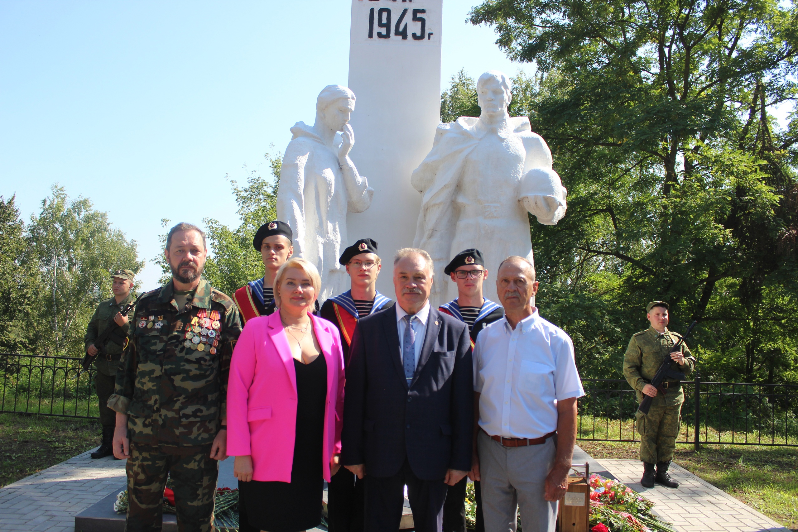 В состав делегации вошли глава райадминистрации Л.В.Филин, начальник отдела культуры, молодежной политики. физкультуры и спорта Л.В.Рылова, командир Карачевского поискового отряда И.Г.Поляков. почетный гражданин г.Карачева С.Д.Гаврилов и юнармейцы школы им.С.М.Кирова.