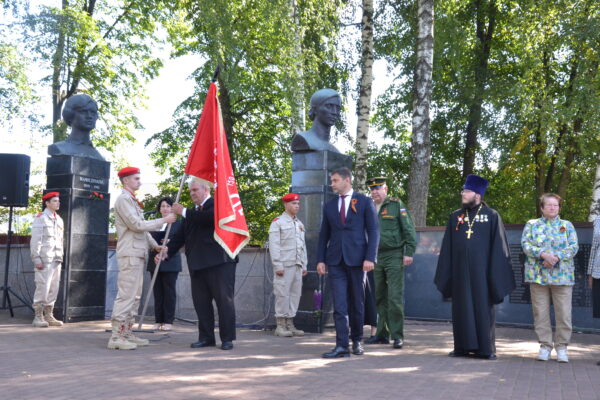 Право принять копию Знамени Победы и Вечный огонь из рук главы администрации Брасовского района Сергея Лавокина предоставили главе администрации Навлинского района Александру Пруднику.