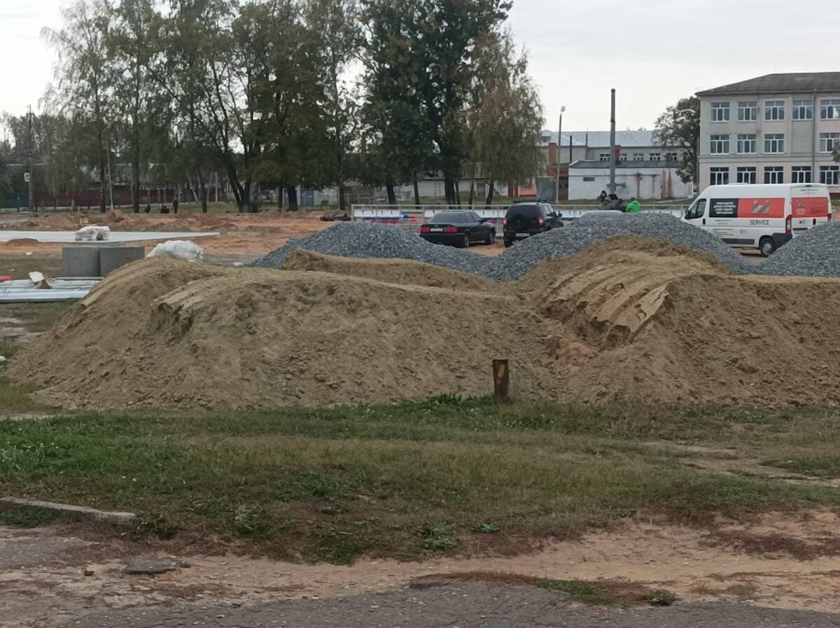 Строители уже провели работы по укладке бытовой канализации, водопровода, устройству внутренней ливневой канализации, подготовили спортивные площадки для волейбола и баскетбола с резиновым покрытием, возводят бетонные основания для других площадок, в т.ч. комплекса уличных тренажеров, трибуны, проводят электрокоммуникации.