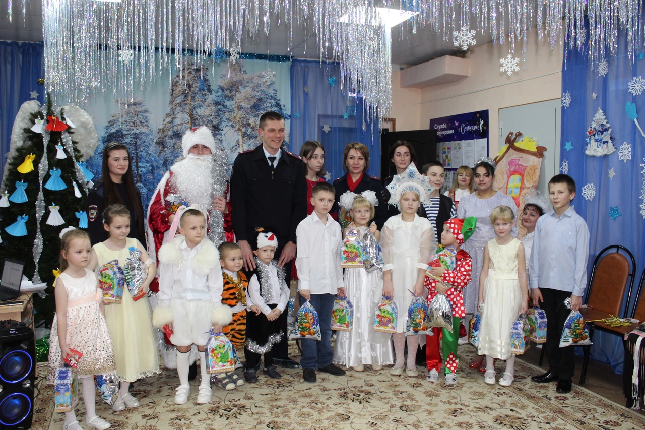 Поздравить ребят с наступающим Новым Годом и вручить подарки пришли глава города Карачева М.А.Николаева, начальник ОМВД России по Карачевскому району, подполковник полиции П.П.Кузьмин и старший инспектор группы по делам несовершеннолетних отдела участковых уполномоченных полиции и по делам несовершеннолетних (ОУУП и ПДН) Е.В.Иванюхина, представители регионального управления налоговой