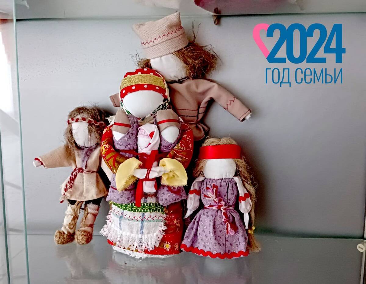 Традиционные в славянской семье куклы-обереги: Метлушка, Куколка на счастье, Кубышка-травница, Веснянка, Берегиня северная и многие другие, предоставили для экспозиции участники клубного формирования «Берегиня».