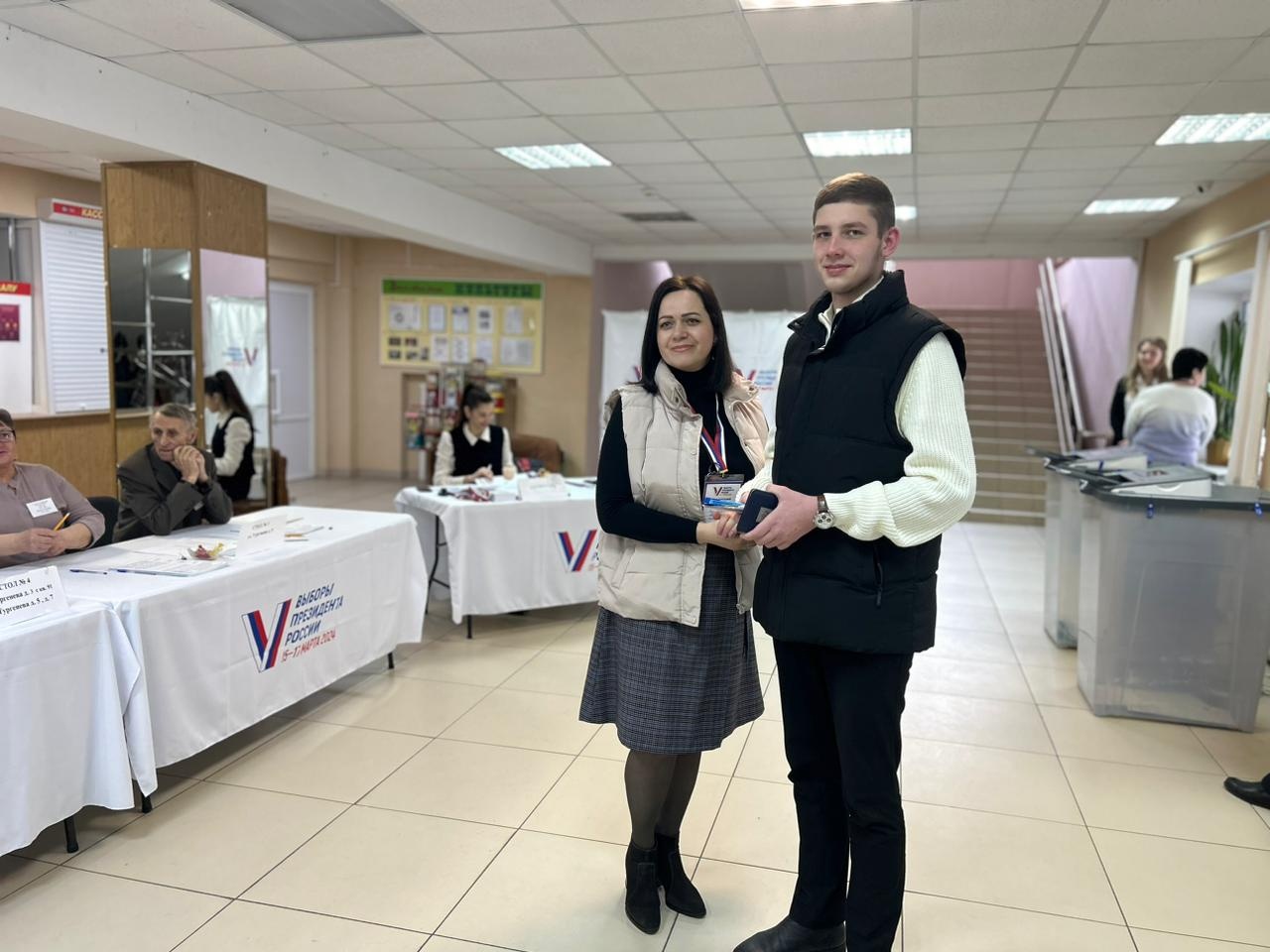 18-летний Кирилл Горельченков впервые пришел на избирательный участок в качестве избирателя. С этим знаменательным событием его поздравили члены участковой комиссии №437, расположенном в задании РДК. Председатель Людмила Алексеевна Романовская ...